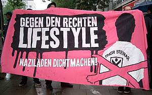 In der Auseinandersetzung mit Rassismus und Neonazismus müsse genauer hingeschaut werden. Sowohl bei den Inhalten, als auch bei dem Symbolen. Es geht den Antifas aber auch darum den Geschäftsbetreiber des US & BW-Shop Karl Meier aufzufordern, den rechten Lifestyle aus seinem Sortiment zu verbannen und keine Geschäfte mehr mit den Nazi-Accessoires zu machen.