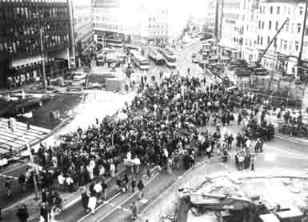 1991: Zahlreiche Menschen blockierten den Jahnplatz, als der Golfkrieg begann